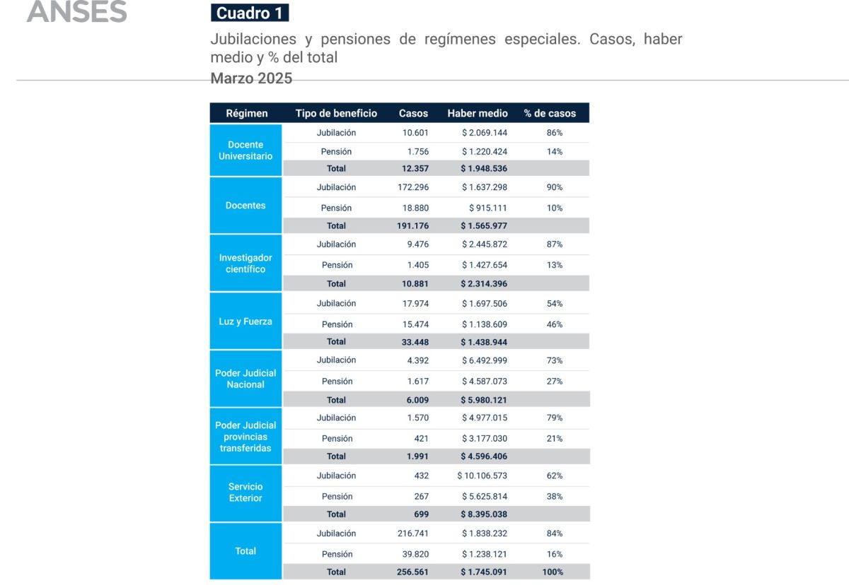 Un dato importante, este régimen especial es en promedio salarial más bajo que el resto de los regÃmenes como el de la justicia o el de servicio exterior, que triplican o cuadruplican el salario promedio de la docente jubilada. (Cuadro 1).