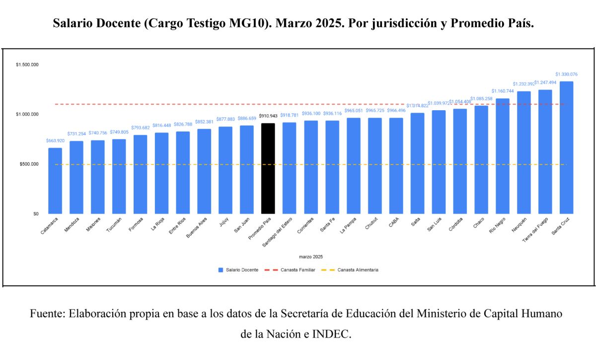 Las disparidades interprovinciales son alarmantes: une docente en Santa Cruz o Tierra del Fuego percibió casi el doble que sus pares en Catamarca o Mendoza.